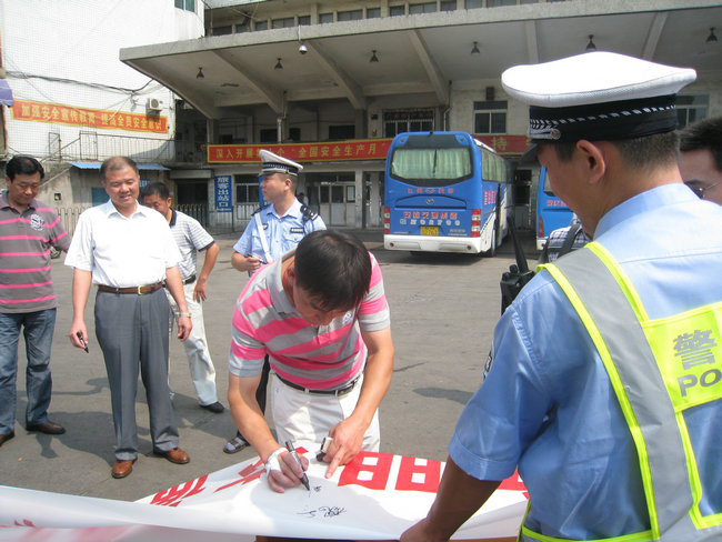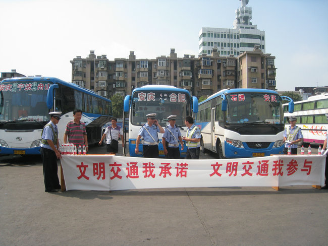 9月4日,市客運(yùn)分公司與交警支隊(duì)二大隊(duì)在安慶汽車站停車場(chǎng)內(nèi)開(kāi)展“文明交通我承諾,文明交通我參與”駕駛員簽名活動(dòng);顒(dòng)首先由交警支隊(duì)二大隊(duì)二中隊(duì)楊指導(dǎo)員宣傳5種易發(fā)生道路交通事故的不良及違法駕駛行為,楊指要求駕駛員駕駛車輛做到:不超員、不超速、不疲勞駕駛、不酒后駕駛、不無(wú)證駕駛,做文明禮讓安全行車的文明駕駛員;隨后進(jìn)行了駕駛員簽名,市客運(yùn)分公司110名未當(dāng)班的駕駛員參加了本次簽名活動(dòng)。