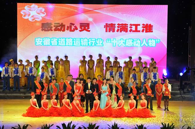 會議期間舉辦了"十一五"期間全省道路運輸行業(yè)"十大感動人物"頒獎晚會,運用視頻短片等形式對獲獎者的先進事跡進行了宣揚。現場群眾觀看著大屏幕上獲獎者的感人事跡,聆聽著獲獎者的樸實話語,一次次用雷鳴般的掌聲表達了敬佩和感動之情。他們的典型事跡,集中展示了道路運輸人的風采,唱響了時代的主旋律,在群眾中引起了強烈的共鳴。省交通運輸廳梅勁廳長、丁慶領副廳長及滁州市相關領導為"十大感動人物"頒發(fā)了獎杯。